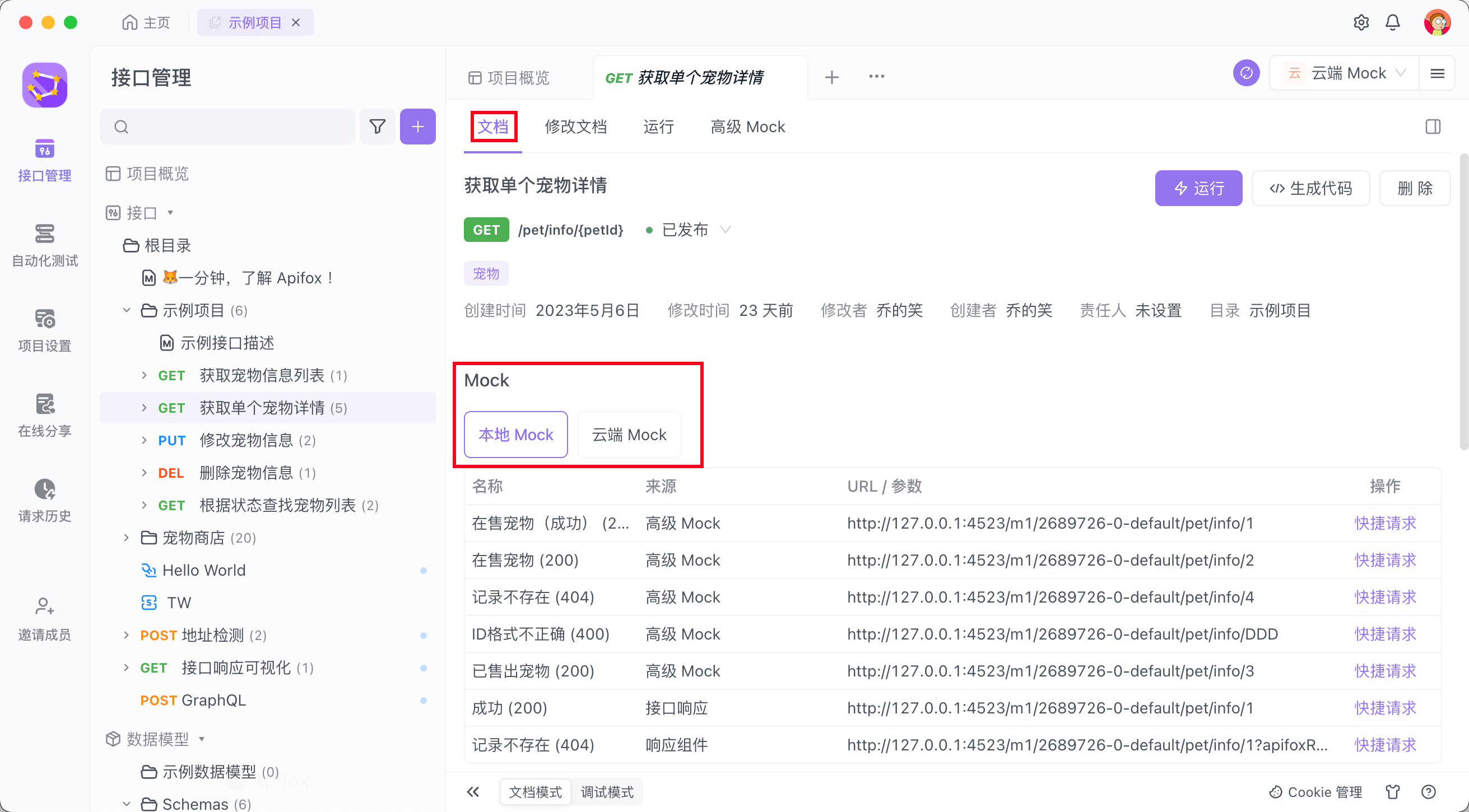 - Mock 服务是在本地启动的,所以 URL 里的 ip 地址为