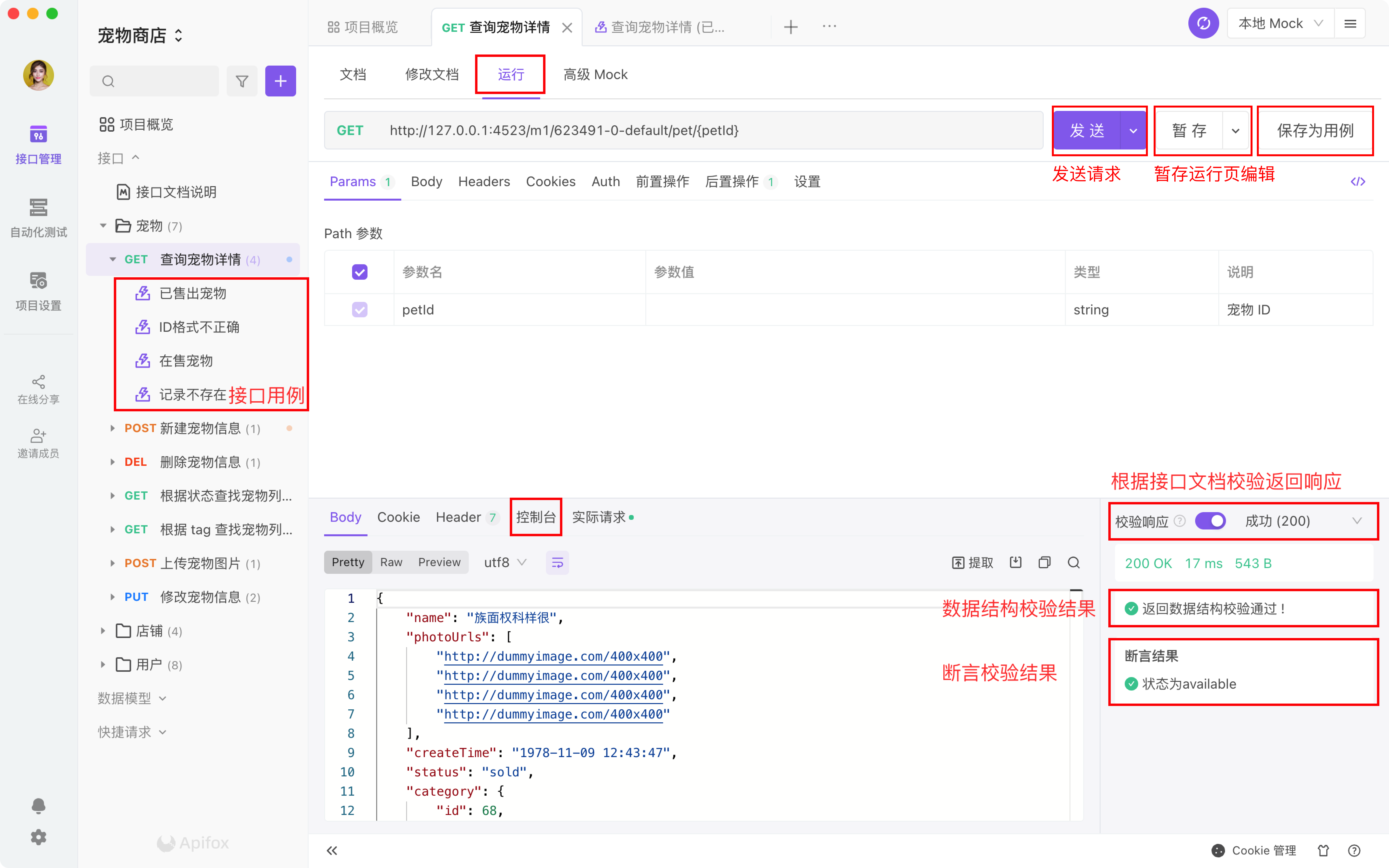 - 如果上述 2 者一致,则显示 ”返回数据结构校验通过!“。说明真实的接口返回值是符合接口文档定义的,不需要人工核对,提高效率和准确性。