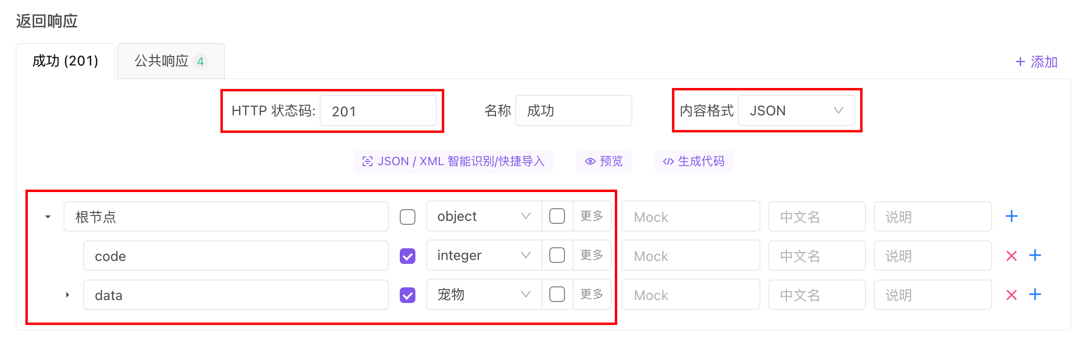 - 返回内容的数据格式: