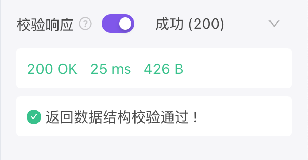 校验响应 是一个高效的测试工具,以 接口文档-修改文档 页面内填写的 返回响应 作为判断标准,与 请求接口 的获得的返回值进行对比。