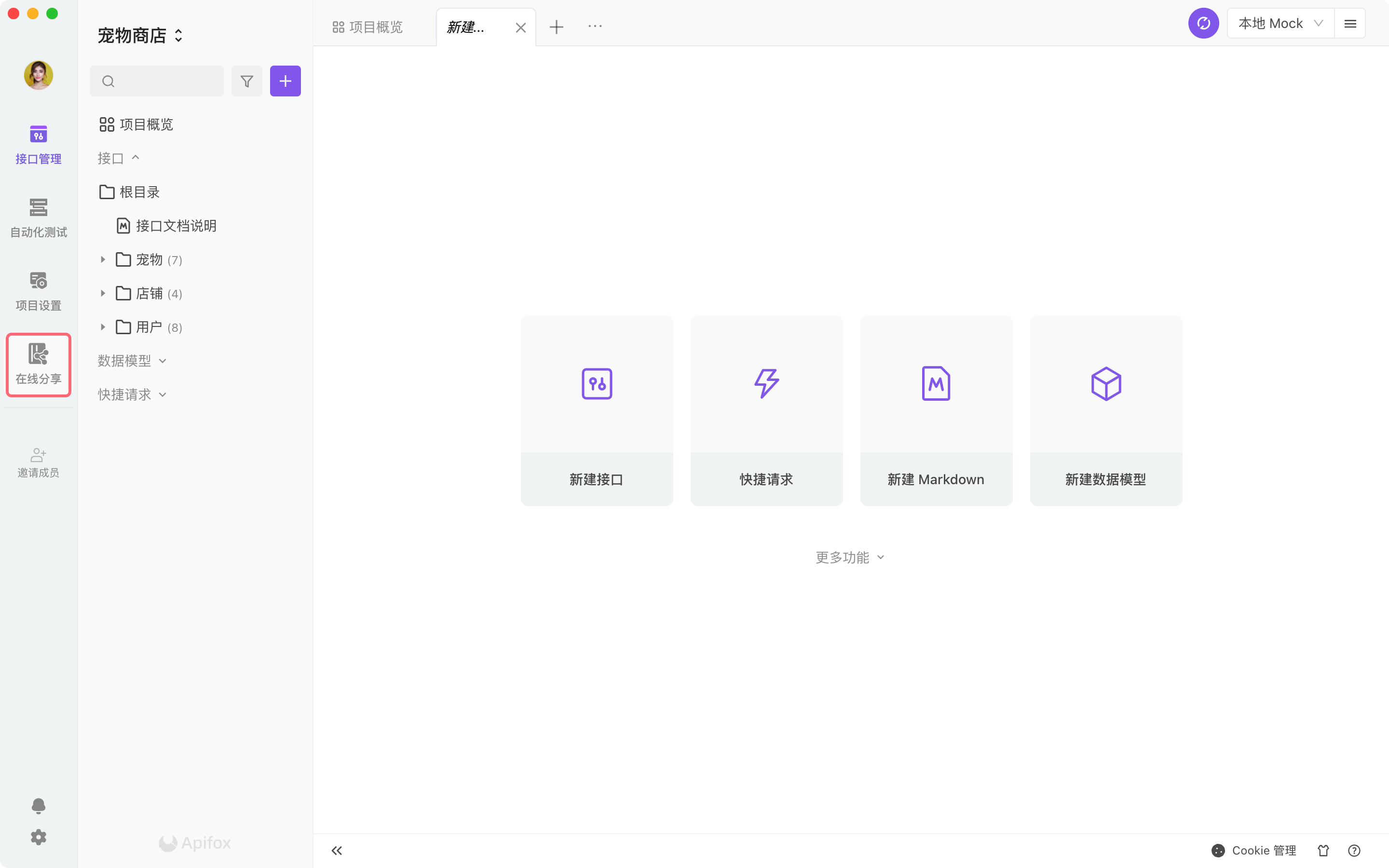 前提条件:当设置 在线分享 时,需要设置环境(推荐选择 云端 Mock )