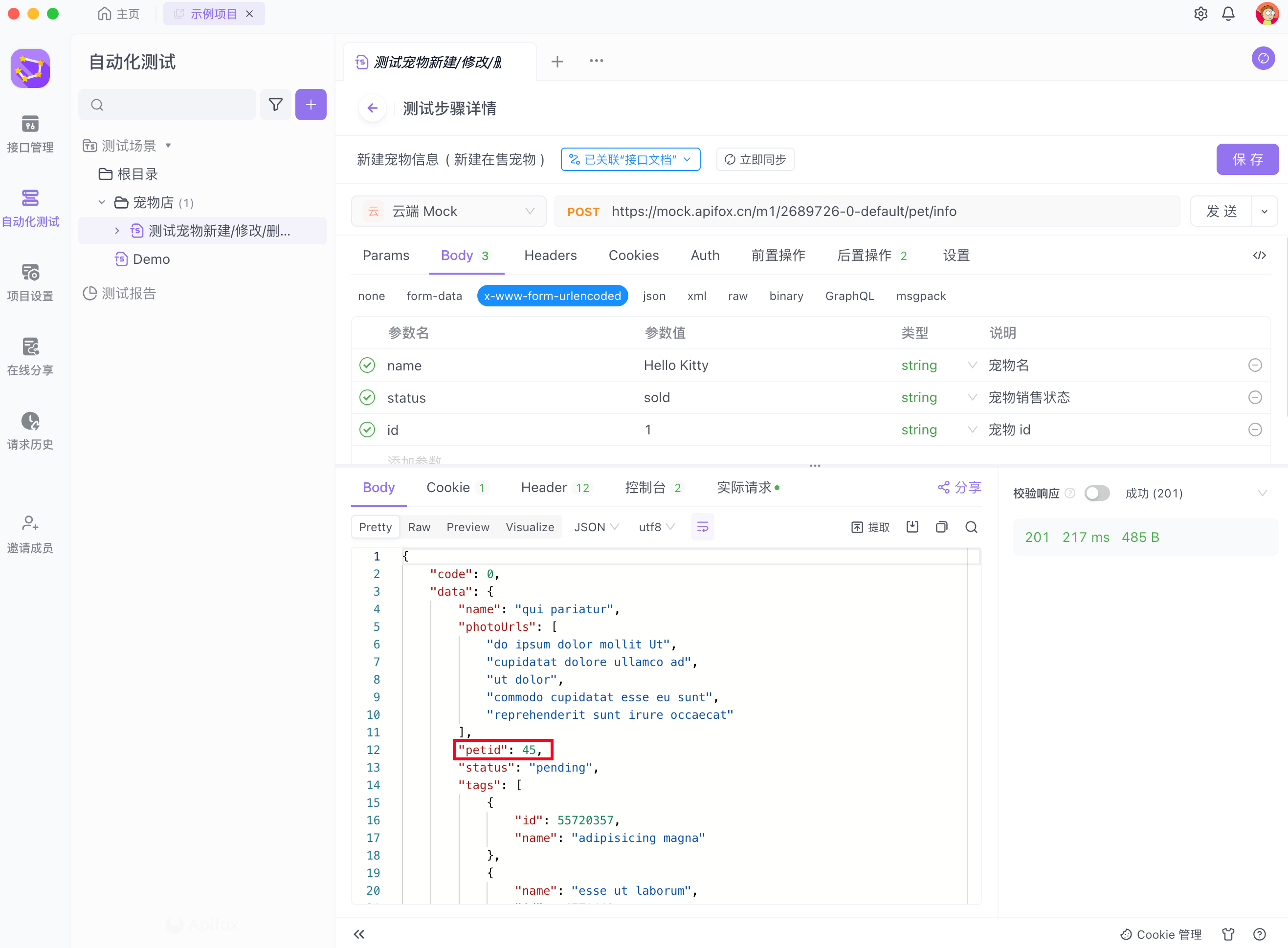 例如现在需要提取 A 接口返回数据中的 petId 值: