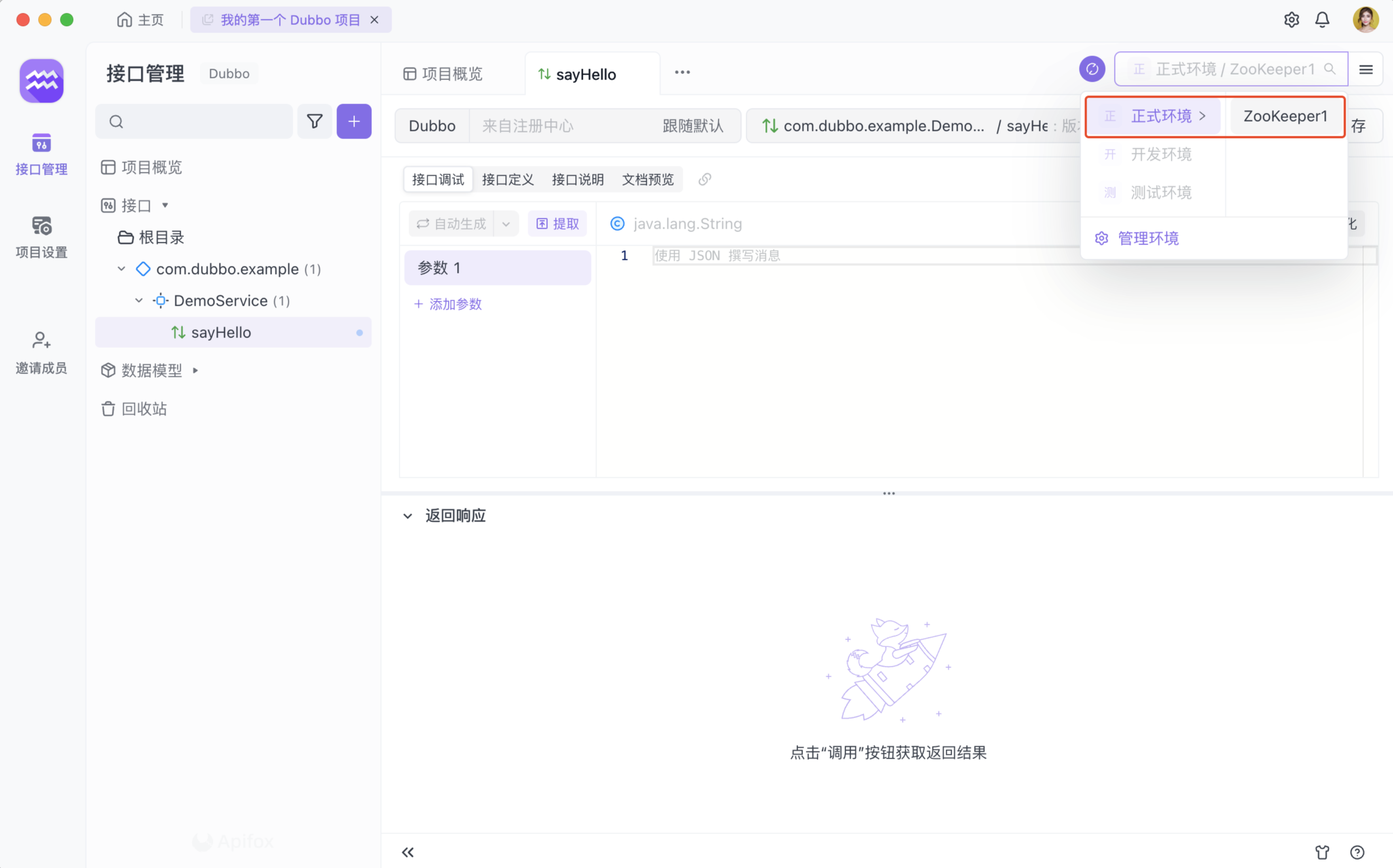 Apifox 目前支持的注册中心为: ZooKeeper、Nacos 和阿里云 EDAS。
