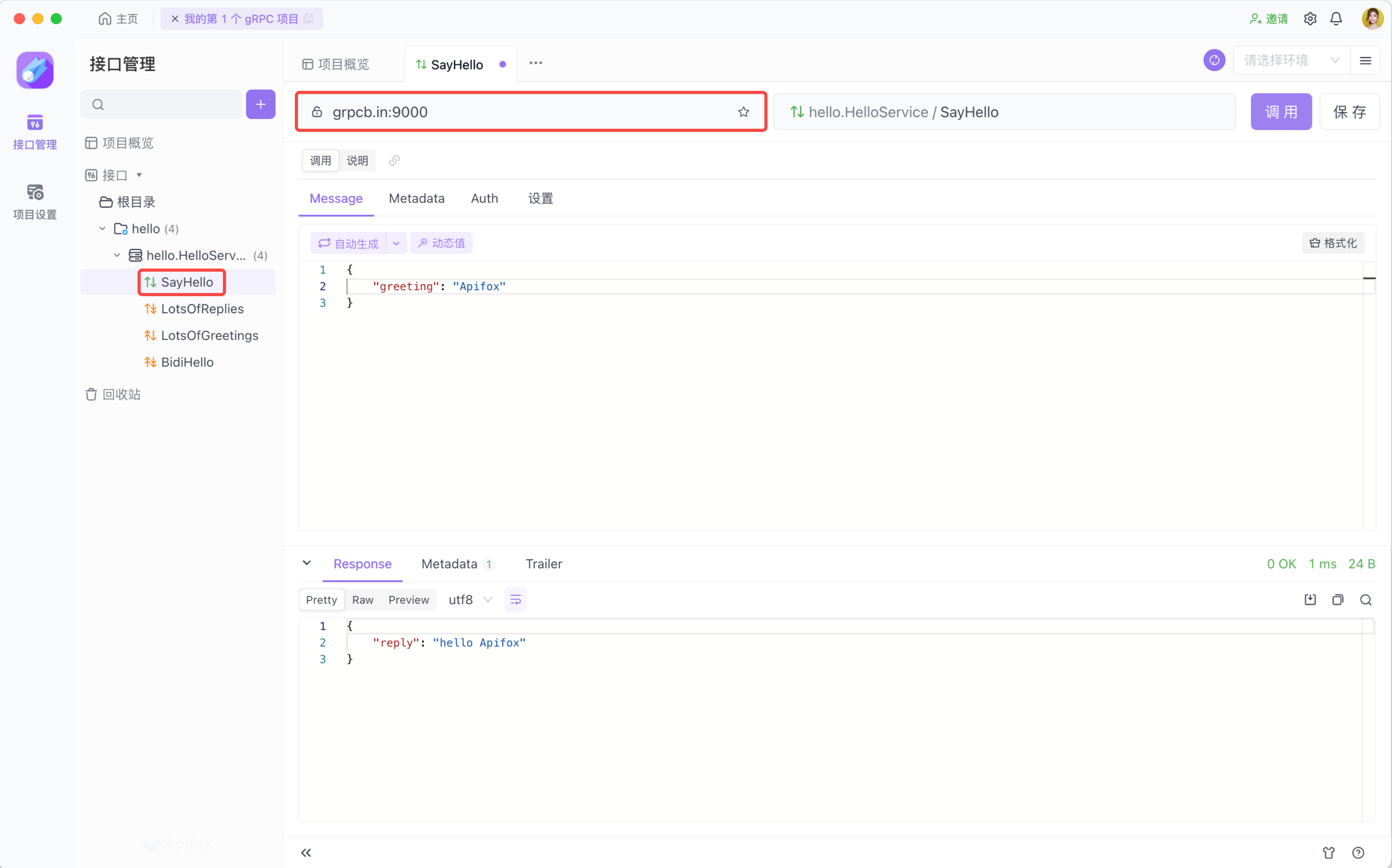 你可以在 gRPC 的消息和 Metadata 中使用 Apifox 变量。