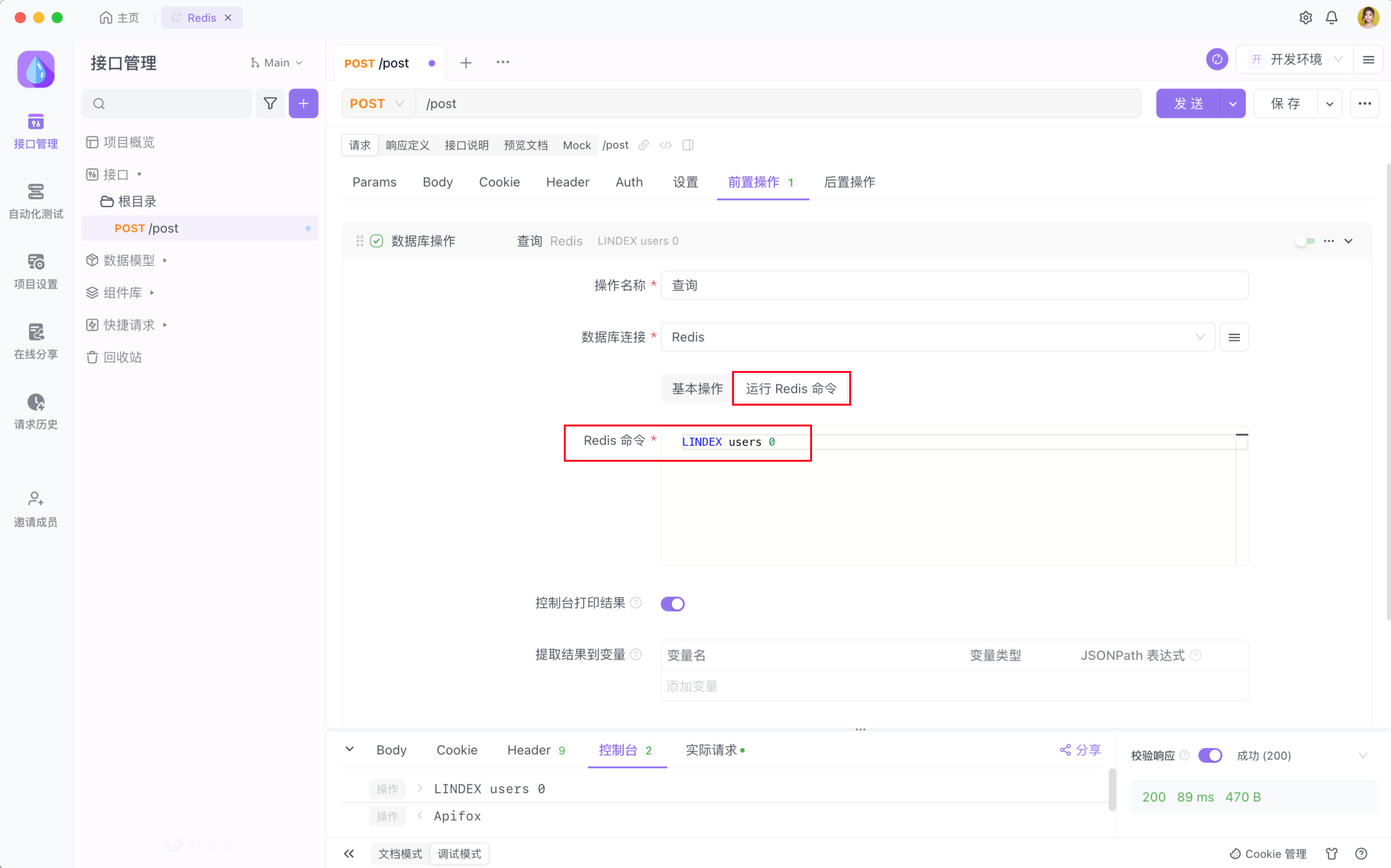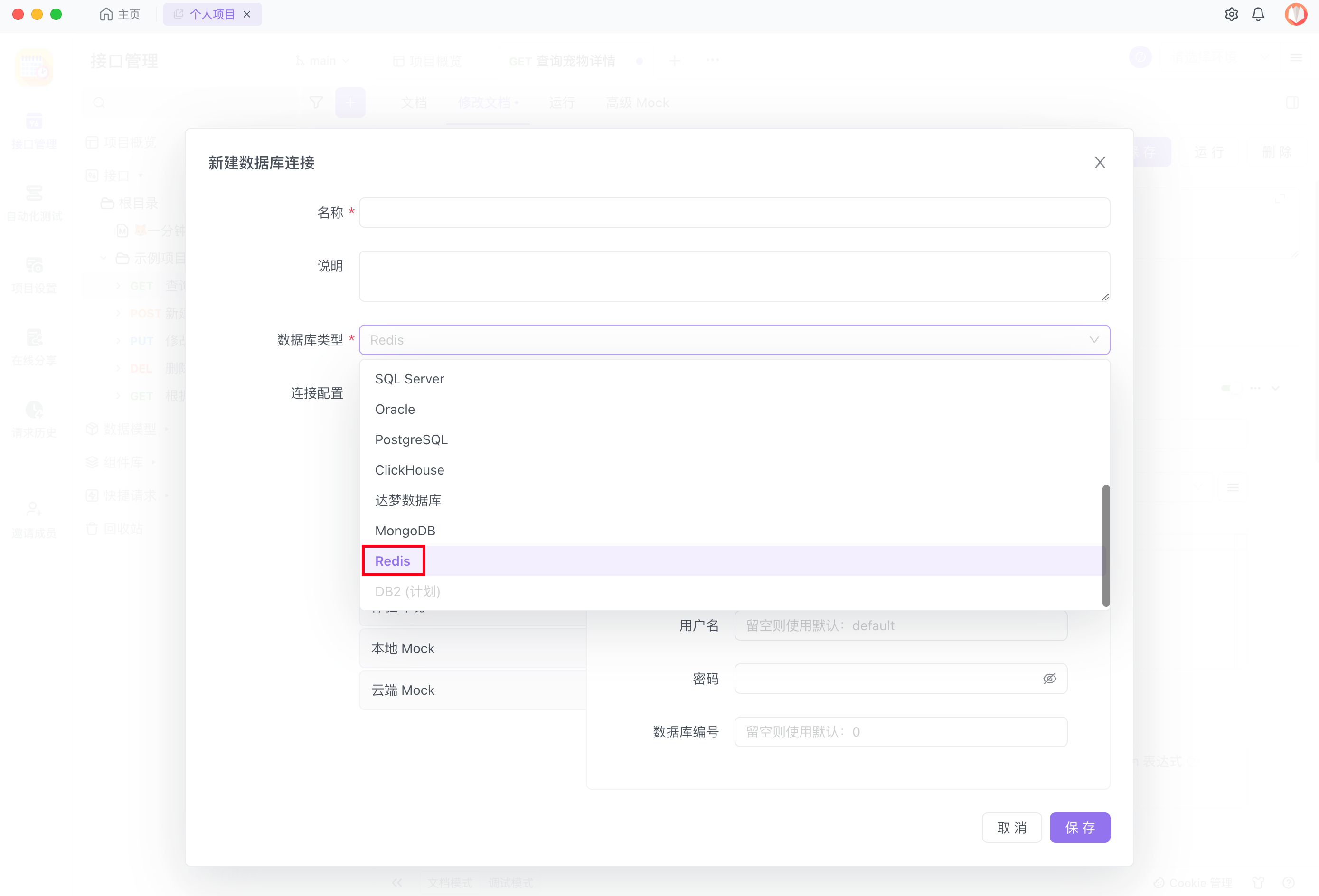 连接 Redis 数据库是 Apifox 企业版功能,请添加企业微信客服了解更多信息。