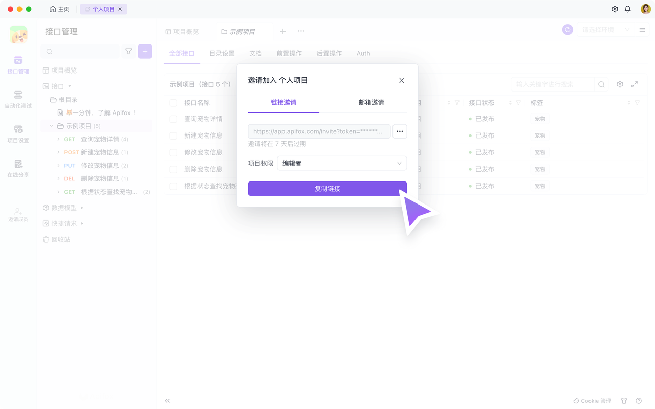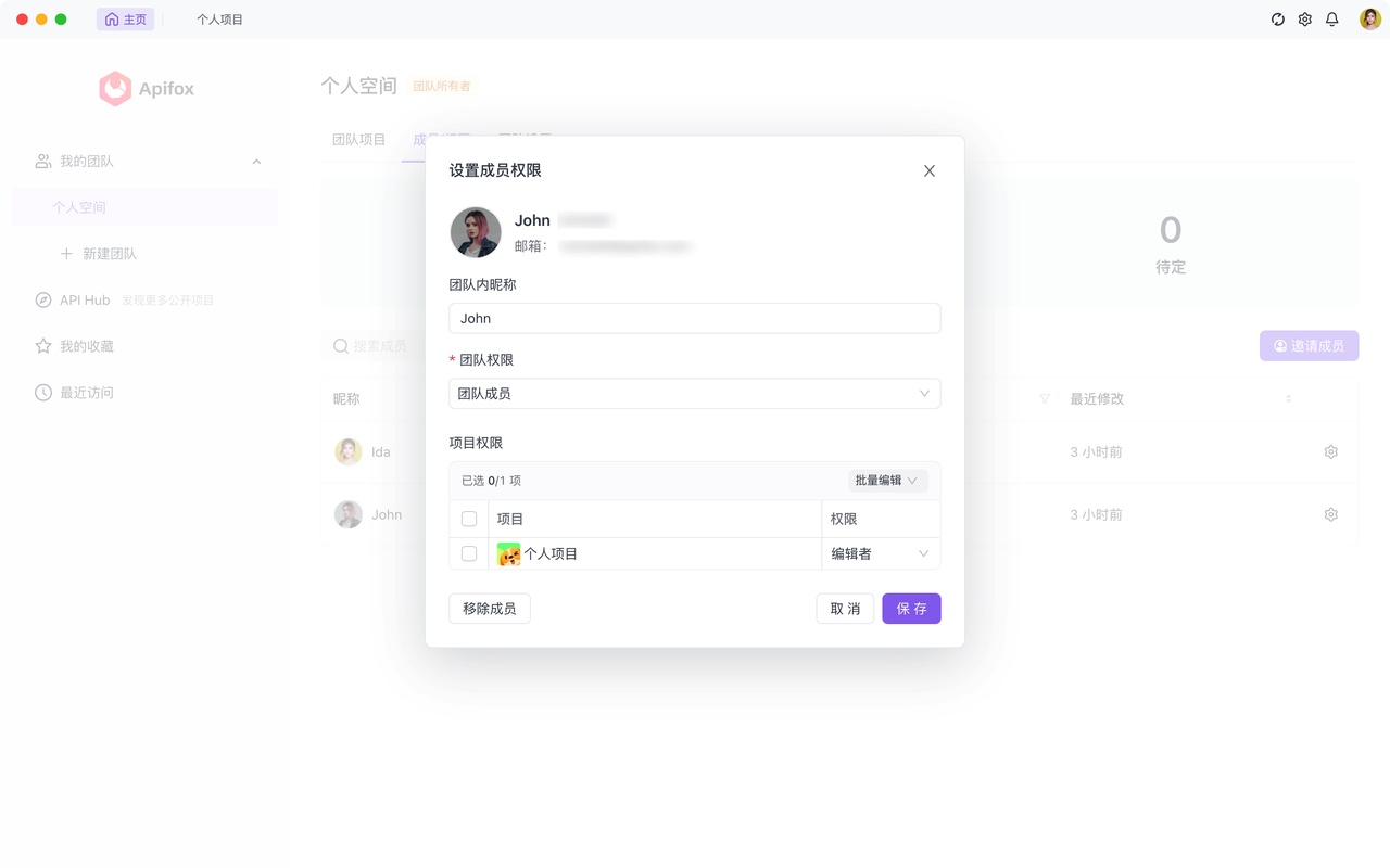 1.当你发送邀请时,可以指定邀请对象参与当前团队的特定项目,并设置他们的权限级别。