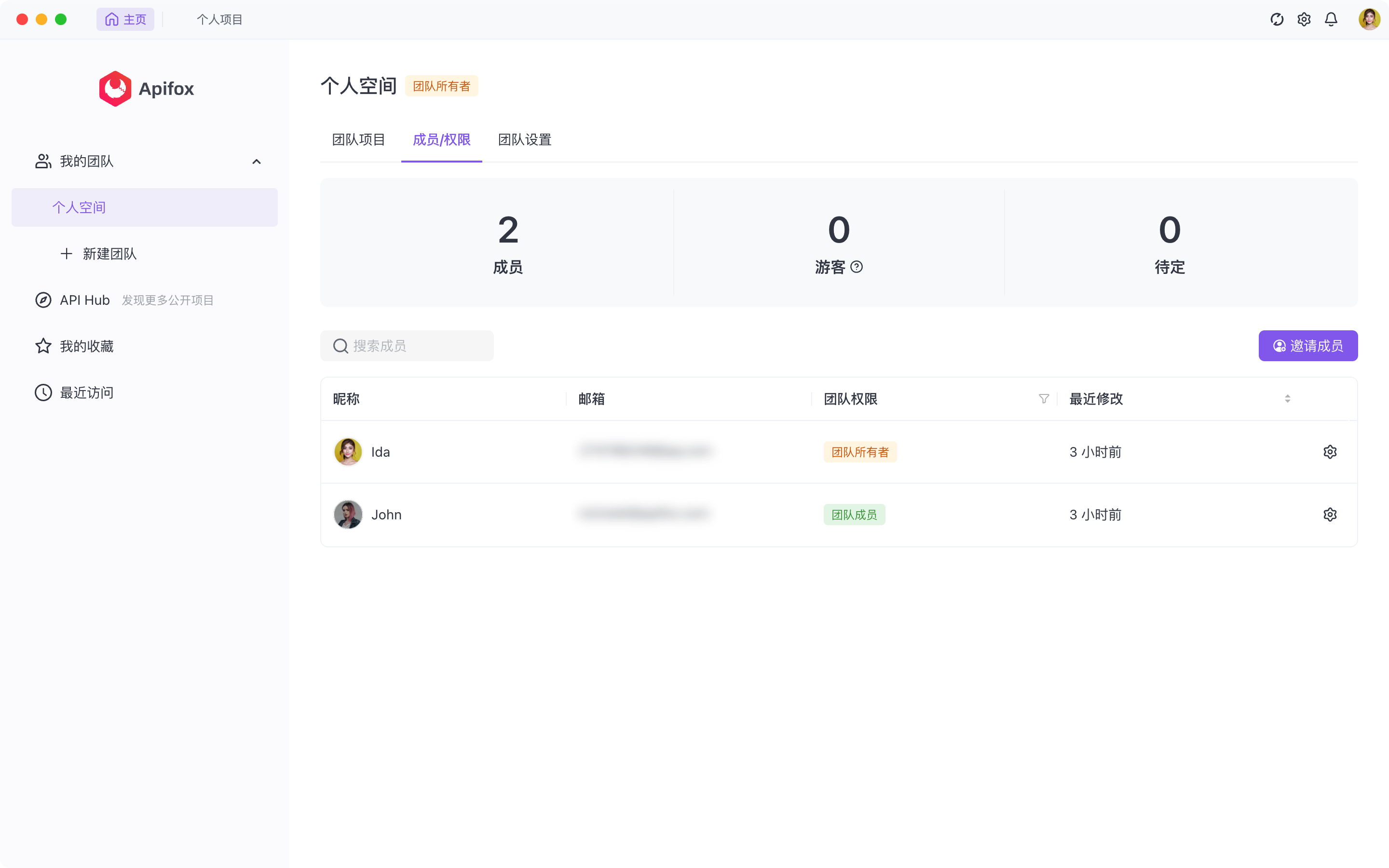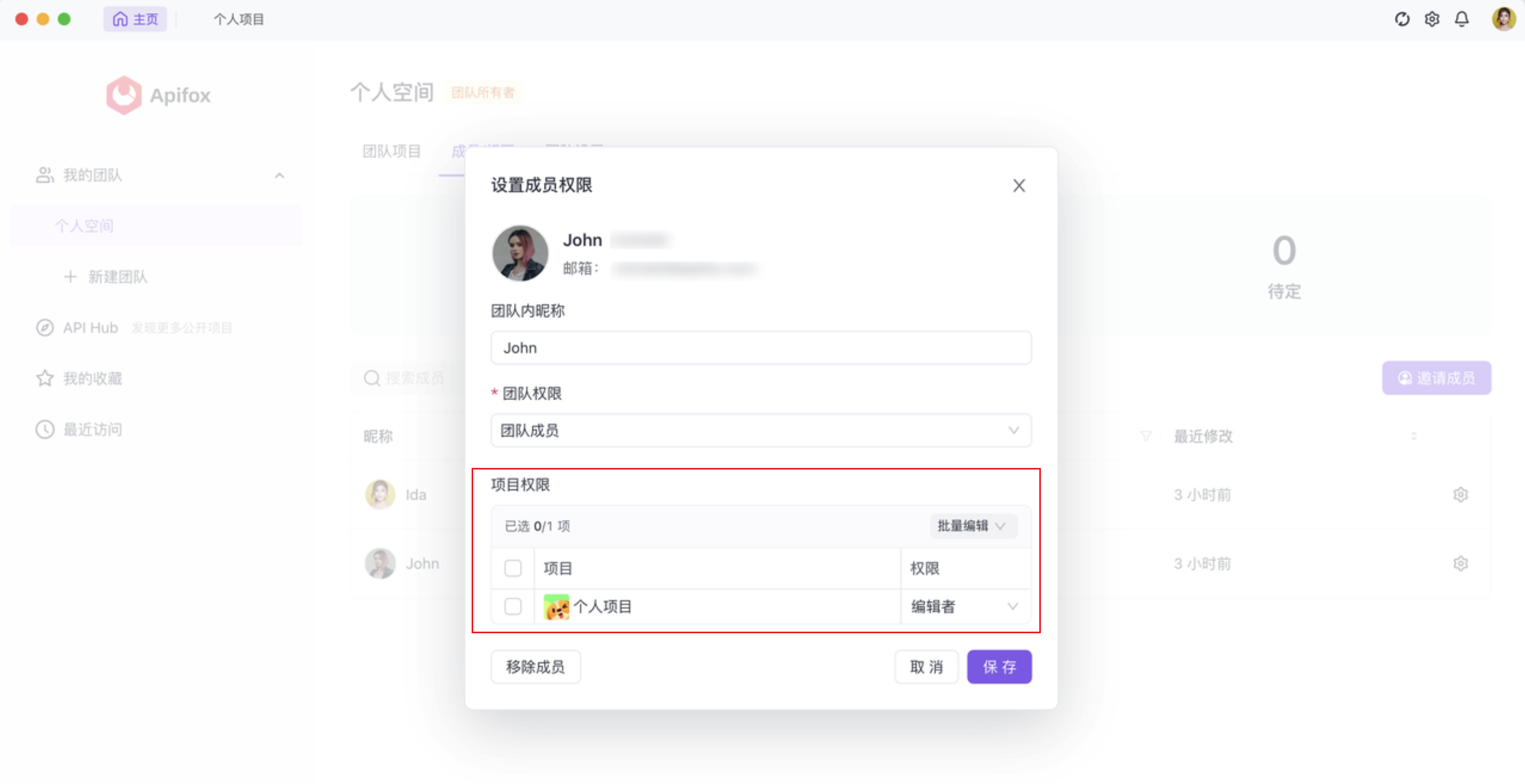 2.也可以通过「我的团队」->「成员/权限」-> 「项目权限」为成员设置项目层级权限。